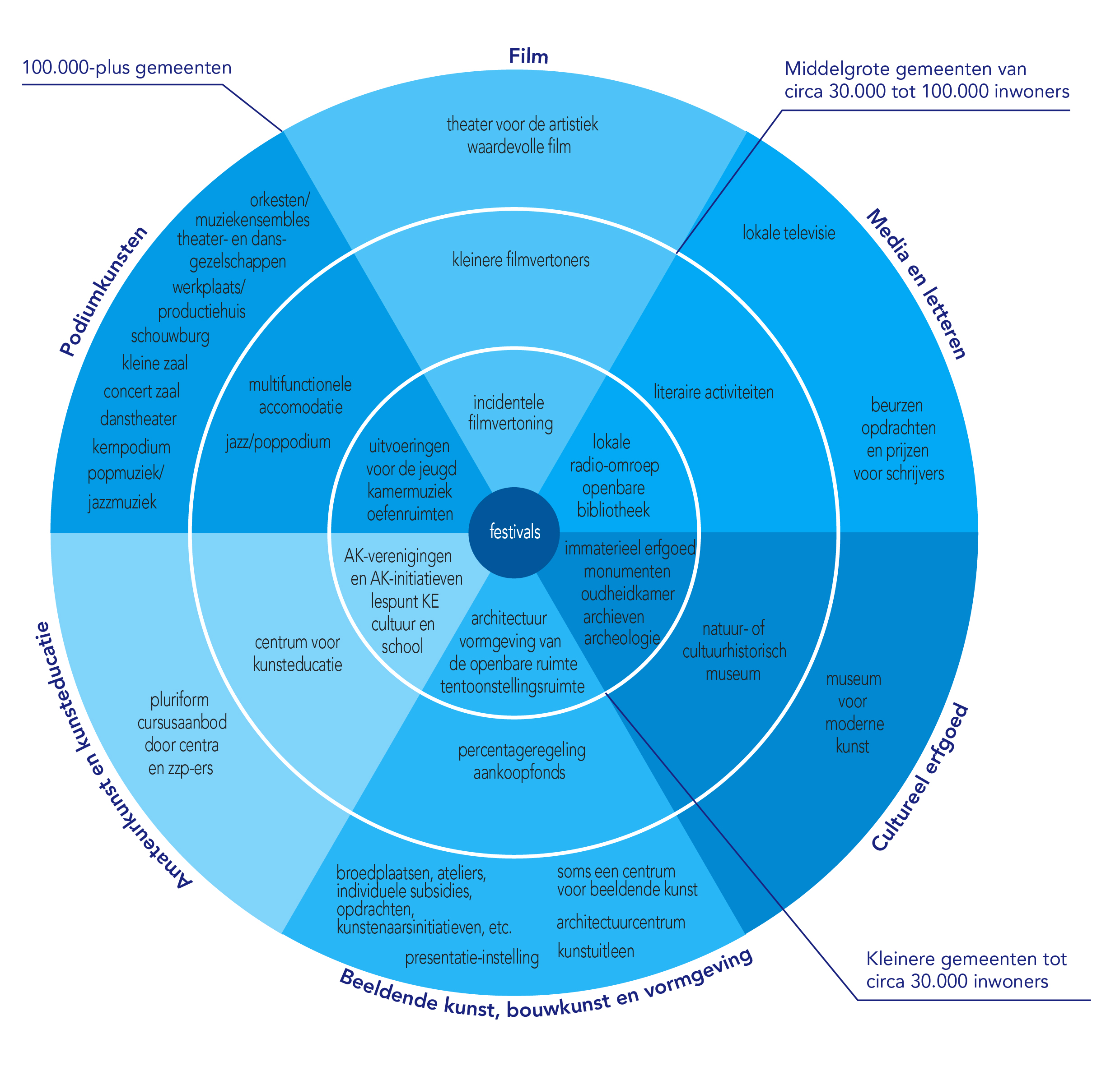Het ringenmodel over gemeentelijke culturele infrastructuur zoals opgenomen in het boek De Culturele Stad (2014). In hoge resolutie